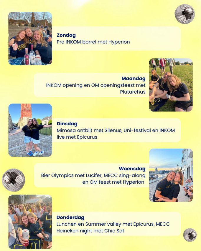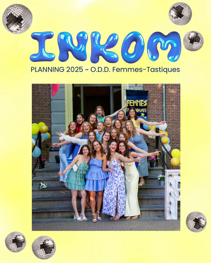 Welkom op onze INKOM* pagina! Het aftellen naar INKOM* 2025 is al begonnen!! Wil je nou graag een keertje met ons meeborrelen? Check onze planning en stuur ons een DM op insta of app Anne (06-36484963) en kom lekker mee feesten!! 🥳